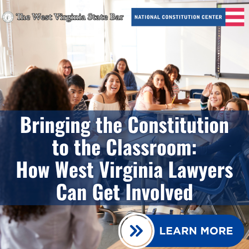 WV State Bar Vice President, Robby Aliff, leads first National Constitution Center class at Huntington Middle School as an NCC Scholar